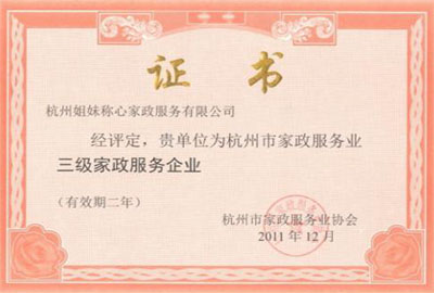 2011年榮獲三級家政服務企業