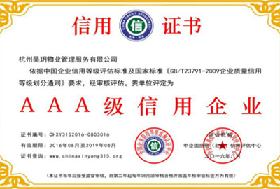 2016年榮獲AAA級信用企業